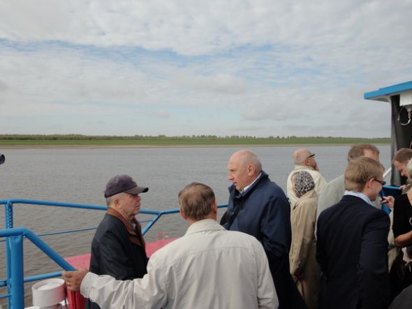Утром после завтрака, нас ожидала 4-х часовая прогулка на теплоходе к месту слияния двух великих сибирских рек – Иртыша и Оби. Прекрасные виды поймы Иртыша, солнечная погода, «рюмка чая» в компании земляков, подняло настроение всех участников экскурсии и над сибирской рекой зазвучали любимые песни сибиряков – первопроходцев 70-х и 80-х, годов. После обеда в ресторане гостиницы обе делегации автобусами отправились на экскурсию по городу. Для многих ветеранов – земляков, давно не бывавших в Ханты-Мансийске город открывался заново. Прекрасные современные здания оригинальной архитектуры, изумительно оборудованные парки, памятники, фонтаны привели нас в восторг. Да, это столица самого нефтяного края России под красивым названием – «Югра»! В душах и словах ветеранов звучала гордость за дела свои и многих коллег того далёкого времени когда тюменский нефтяной край только начинал осваиваться. И каждый раз, проезжая мимо старых зданий звучало: «А помнишь…».