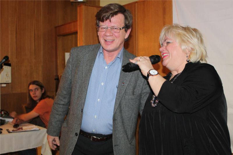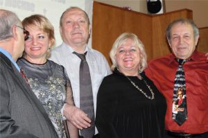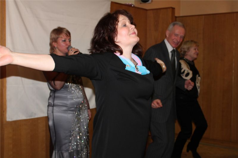 Проникновенно звучали в этот вечер слова С.Д. Великопольского, президента Тюменского областного общественного фонда имени В.И. Муравленко, обратившегося к юбилярам с… экрана. Эту и другие видеозаписи поздравлений привезла из Тюмени Жанна Прохорихина, певица, автор текстов и музыки, Почётный член Российского авторского общества, победитель и лауреат многочисленных эстрадных конкурсов и фестивалей. Замечу, что уходящий год для Жанны был ознаменован дуэтом (он был назван слушателями звёздным) с Вилли Токаревым. Желаю талантливой землячке скорейшего и успешного сольного концерта на большой сцене столицы, и верю, что этого события осталось ждать недолго, судя по успешному выступлению Жанны Прохорихиной на международном фестивале искусств «Славянский базар» в прошедшем году.