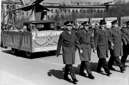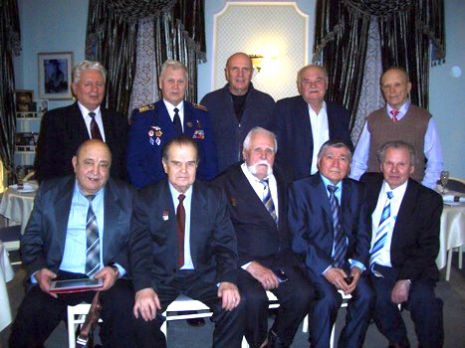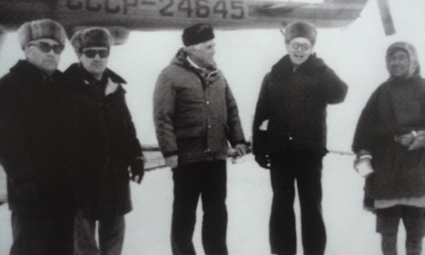 Семь лет шли рядом два замечательных летчика, два Заслуженный пилота СССР: И.Т.Хохлов и В.С.Краснов. Далее (слева направо) М.Т.Калинин, С.Пичугов, 1974-й год.