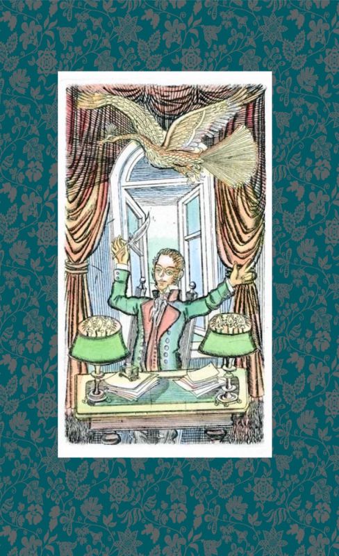 Для создания сказки вообще, и тем более такой популярной, как «Конек-горбунок», нужно детское мировосприятие, необходима чистота души, любовь к жизни и наследственное, от предков, знание ее светлых и темных сторон. Первые слушатели сказки называли ее реалистичной, отмечали знание автором особенностей крестьянского быта. Ершов поделился с соотечественниками всеми своими духовными богатствами, которыми обладал от рождения. Именно таким щедрым, молодым, веселым, вдохновенным, осененным крылом Жар-Птицы, символизирующей надмирный источник вдохновения, мы видим поэта на офорте, расположенном в начале книги.