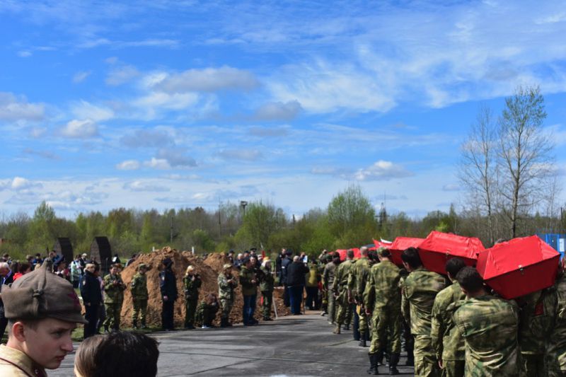 Везде прошли торжества памяти и героизма советских воинов. Много было выступающих ветеранов и участников этой кровопролитной войны. Затем прошло траурное перезахоронение 1800 останков воинов, найденных в 2018 году поисковыми группами, в первую очередь, группой «Долина». Траурная музыка и воинский салют.