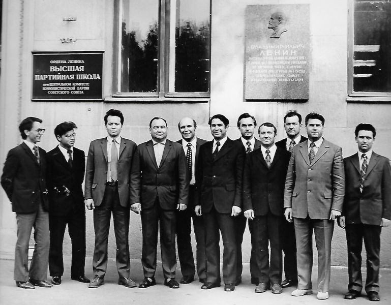 | Тюменцы – слушатели Высшей партийной школы при ЦК КПСС, Москва, 1975 год. Справа Юрий Торхов, рядом – Анатолий Анисимов. |