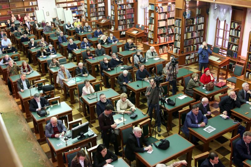 Под портретом графа Российской империи Николая Румянцева (художник Джордж Доу, 1826 – 1828), обращенным к залу, и проходило мероприятие. Что, конечно, впечатляло, настраивало на определенный лад, но меня больше поразила иная деталь. Многие приходившие на презентацию – и почтенные мужи, и молодежь, присутствие которой было достаточно заметным, – приветствуя друг друга, говорили: «Поздравляю!», – и, как мне показалось, произносили это слово с таким чувством, с каким обычно произносят его в преддверии большого общего праздника.
