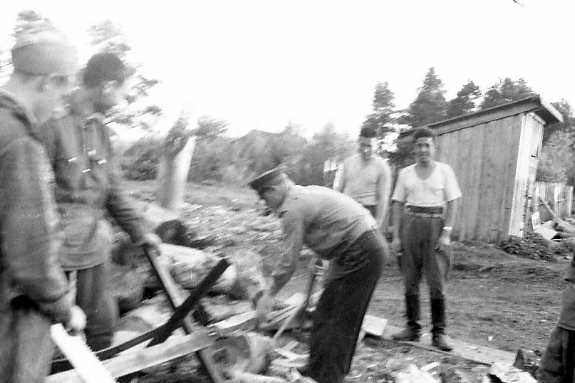 | Мастер-класс по колке дров капитана Лукашенко. |
