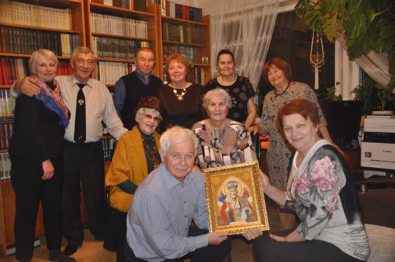 Много пели. Заводилой в этом занятии была Людмила Мусатова – музыкальный работник детского сада. Хохотали чуть не до упаду, разве что только вприсядку не плясали. Вспомнили дни рождения всех наших членов клуба. Александра Андреевна Василишина в этот день Святочной седмицы подарила Анатолию Петровичу Ефимову икону святителя Николая Чудотворца собственноручной работы с применением алмазной росписи.