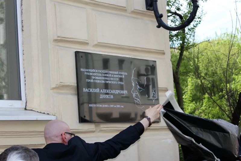 Союз нефтегазопромышленников РФ, члены Западно-Сибирского землячества, ветераны нефтяной и газовой промышленности приняли участие в церемонии открытия мемориальной доски Василию Александровичу Динкову - ключевой фигуре в развитии топливно-энергетического комплекса СССР, министру газовой промышленности СССР, министру нефтяной промышленности СССР.