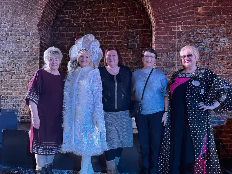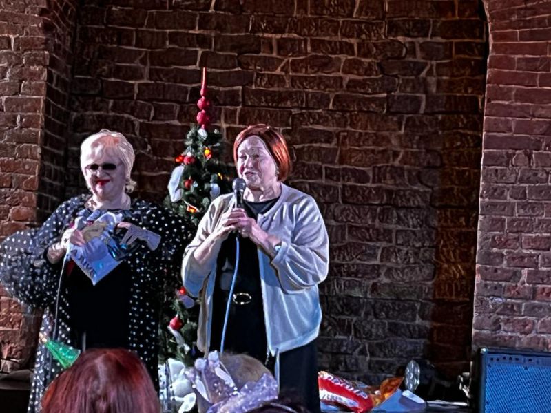 В уютном кафе за столиками мы не только смотрели и слушали выступления артистов, но и принимали непосредственное участие. Пели песни, отвечали на вопросы викторины. Даже танцевали на сцене. Прочитала стихи и поздравляла всех с наступающим Новым годом Раиса Павловна Кудряшова.