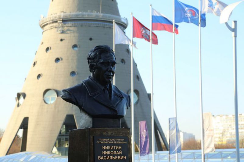 В Москве увековечили память главного конструктора Останкинской телебашни, у её подножия открыли бюст Николая Никитина.