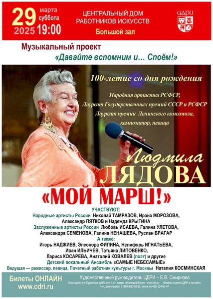 Словом, атмосфера была домашняя, дружеская, какая бывает, когда собираются самые близкие люди. Было много песен, танцев, задушевных разговоров и подарков. Земляки договорились вновь встретиться в Центральном доме работников искусств 29 марта на памятном вечере, посвященном большому другу землячества, композитору Людмиле Лядовой. В этом году ей бы исполнилось 100 лет. И можно сегодня уверенно сказать, что песни Людмилы Лядовой продолжают дарить радость поклонникам ее таланта.