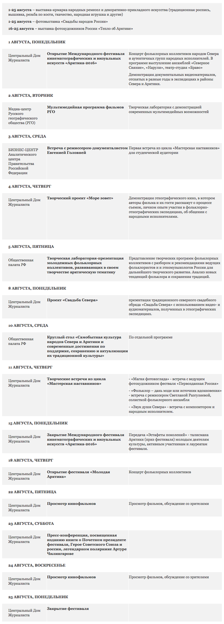 Программа Международного фестиваля кинематографических и визуальных искусств «Арктика-2016»