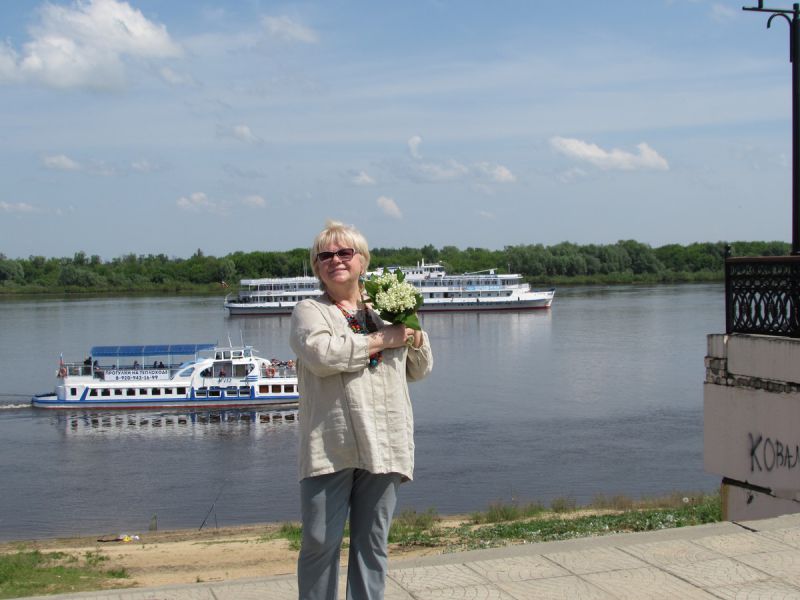 Погуляв по муромским улочкам, я попала на городской рынок, где купила последние ландыши. С набережной был виден наш теплоход, стоящий на рейде. Местный пляж был еще пуст, ведь это был первый, после затянувшихся дождей, неожиданно теплый, даже жаркий день, +28. Стояла какая-то ...настоящая тишина, и на душе было ощущение пусть мимолетного, но – счастья! Счастья от сопричастности к вечному: городу, истории, реке, храмам и церквям, синему небу, любви Петра и Февронии... А значит, к жизни. И этот момент я запечатлела на фото.