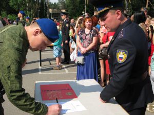 Солнце палит нещадно. И вот, наконец, долгожданная военная присяга. Перед лицом командиров, боевых товарищей и всего честного мира новобранцы дают клятву на верность своему Отечеству – Российской Федерации. Этот слепящий июньский день, свое волнение, присягу Родине и ее народу каждый из них запомнит на всю жизнь.
