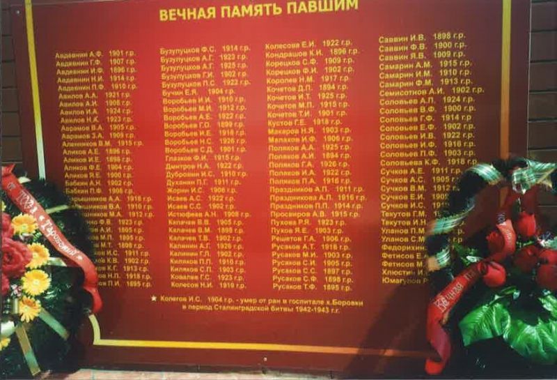 Он не дожил двух месяцев до Сталинградской победы. Его последний бой - за высоту номер 124.5 у хутора Бабуркин. А в хуторе Боровки (именно так он называется) был госпиталь, в котором он лежал и умер. Все захоронения в 70-е годы были перенесены в село Иловайское. Имени отца там почему-то не оказалось.