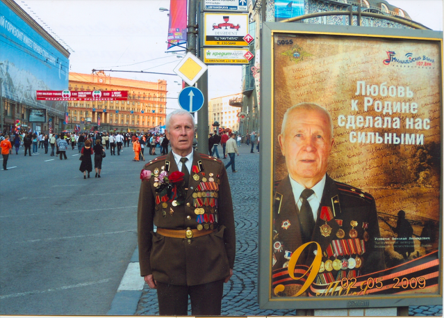 Вы – участник Великой Отечественной войны и 12-ти парадов на Красной площади. Награждены Орденом Отечественной войны II-ой степени, медалью “За Победу над Германией”, Почетный ветеран г.Москвы, член СВЦА МВД РФ; член Комитета памяти маршала СССР Г.К.Жукова; лауреат форума «Общественное признание» и являетесь членом ряда других общественных организаций. О Вас много писали в различных газетах и журналах. Учитывая заслуги, Ваши портреты в мае 2009 года были установлены в самых оживленных местах г.Москвы.