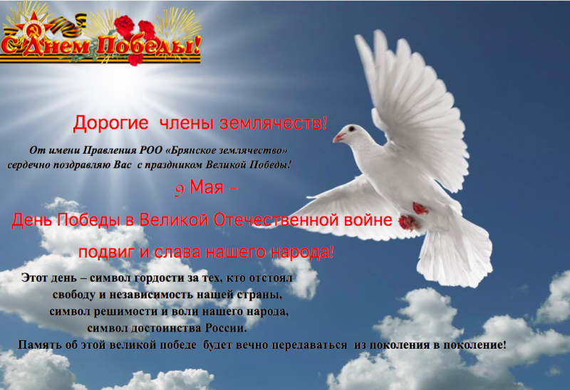 От имени Совета якутского землячества и от себя лично поздравляю Вас с Днем Победы!