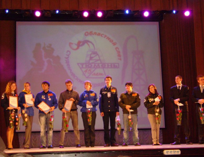 Областной cлет, посвященный 45-летию студенческих отрядов Тюменской области, проходил 20 ноября 2010г. в Тюмени. Организаторами слета стали государственное автономное учреждение Тюменской области «Молодежная биржа труда», Тюменское региональное отделение Молодежного общероссийского общественного движения «Российские студенческие отряды» при поддержке Тюменской областной Думы и департамента по спорту и молодежной политике ТО.