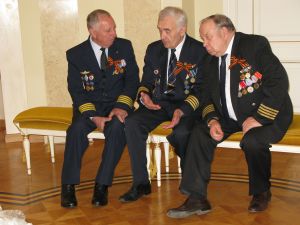 По сложившейся доброй традиции, в шестой раз, накануне 71-й годовщины Победы в Великой Отечественной войне, наши ветераны – участники войны Александр Евгеньевич Вискунов, Юрий Иванович Давыдов, Ефим Аркадьевич Луценко, Николай Леонидович Устюгов и труженики тыла Владимир Аввакумович Бешкильцев, Тамара Филипповна Дремова, Николай Васильевич Сизов, Григорий Кузьмич Петров, Анна Ивановна Устюгова получили приглашение на очередную встречу по случаю торжественной даты. Приглашены были и наши заслуженные летчики, воины - интернационалисты, которые исполняли свой служебный долг за пределами нашей Родины – Борис Илиодорович Голяков, Александр Васильевич Галаганов и Вадим Тимофеевич Кожевников.