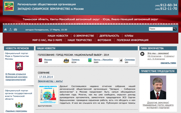 Но главным информационным событием года в жизни землячества стало открытие нового портала, презентация которого состоялась 22 августа 2013 года. Сегодня это полноценный канал общения, объединяющий земляков, источник информации о жизни землячества и регионов. Благодаря порталу мы рассказываем о себе на просторах мирового интернета: на сегодняшний день у нас в гостях побывало уже около 42 тысяч человек. Задумывая идею этого проекта, никто не предполагал столь успешных результатов. А они свидетельствуют, прежде всего, о живом интересе к нашим землякам. Спасибо надо сказать редактору портала Юлии Владимировне Коваленко, а также Людмиле Петровне Касперовой, Лидии Ивановне Шмаль, Тамаре Григорьевне Дунаевой, Андрею Леонидовичу Бобрику, Светлане Евгеньевне Прилуцких, Сергею Евгеньевичу Чайке, Владимиру Михайловичу Стешенко, шеф-редактору московского бюро телерадиокомпании «Ямал – Регион» Станиславу Тропилло и многим другим помощникам, принимающим активное участие в наполнении нашего портала материалами.