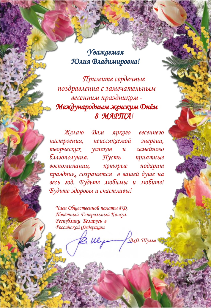 Владимир Шугля: Яркого весеннего настроения, неиссякаемой энергии, творческих успехов!