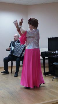 Вела концерт и участвовала в нём несравненная Раиса Павловна Кудряшова. Ведущая солистка, Наталья Архиповна Кашникова, красивым, бархатным голосом исполнила несколько песен, очень знаменитых и в недалёком прошлом модных, а затем в паре с Людмилой Дмитриевной Мусатовой ещё не раз продолжала радовать зрителей. Свои стихи со сцены читали: Аркадий Ананьевич Харюшин, Николай Васильевич Сизов и Лидия Ивановна Шмаль. Стихи других авторов озвучила Александра Ивановна Долгих. Творческий талант открыл для зрителей и внук Раисы Павловны – десятилетний Иван. Он громко с выражением продекламировал два произведения российских поэтов. А восьмидесятишестилетняя Лидия Ивановна Миронова «зажгла» настроение зрителей мастерски исполненным искромётным танцем «Цыганочка». В заключение представления уникальным вокалом порадовала Александра Одинцева. Аккомпанировал исполнителям песен и наигрывал авторские попурри отличный баянист и большой друг нашего клуба Александр Викторович Горелов. Земляки и гости щедро одаривали каждого артиста аплодисментами, а некоторым из них преподнесли цветы.