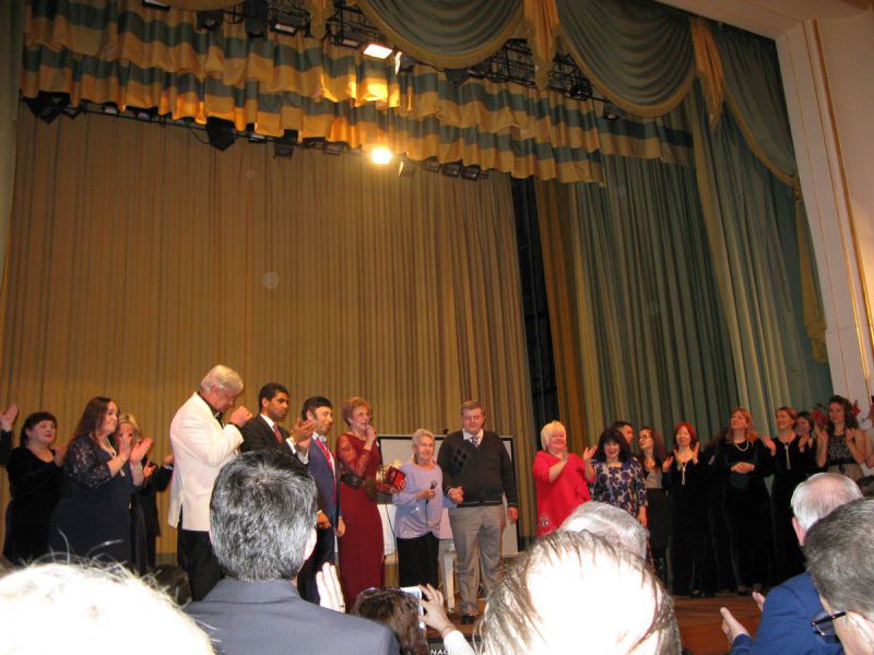 Когда закончила свое выступление, увидела, как на сцену спешат зрители с букетами цветов, и среди них своих земляков, Татьяну Руданец и исполнительного директора нашего землячества Владимира Стешенко. Спасибо, дорогие земляки, за честь, которую вы оказали в этот вечер композитору, написавшему огромное количество песен о Сибири, о ее тружениках, приезжавшему к ним в 60-70-х годах с концертами.
