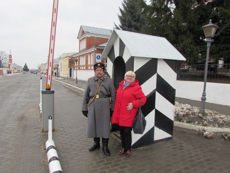 Первая экскурсия у нас была по кремлю, вход в который охранял …квартальный. Все, как положено: форма, стилизованная деревянная будка, шлагбаум. Правда, он все же был не настоящий и представлял из себя часть туристической программы.
