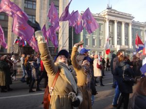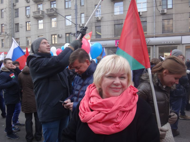 Сердце защемило от воспоминаний. Так в молодости мы ходили сначала от школы, потом с институтом на демонстрации, и были едины в той далекой советской жизни со своей совестью и в любви к своей стране. Время остановилось на точке возврата в хорошее прошлое, я не заметила, как мы прошли Тверскую.