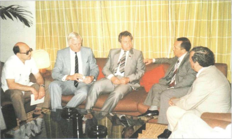 В. Г. Чирсков, Н. И. Кизуб на переговорах с министром промышленности Кубы. Гавана, 1987 г. |