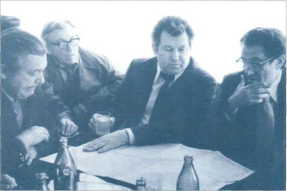 В. П. Курамин, В. А. Стипаненко, Ю. М. Луковский на катере по пути на Ямбург. 1978 г.