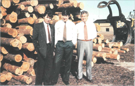 В. П. Малюгин, Ю. К. Шафраник, В. Г. Чирсков. На лесозаготовительной базе. 1991 г. |