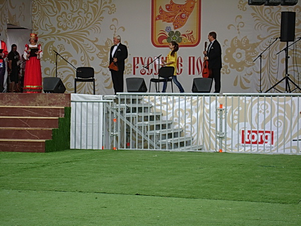 В кульминационной части Фестиваля на сцене, с завораживающими песнями, танцами в ярких костюмах, выступил Государственный академический русский народный хор им. Пятницкого. Восторженные апплодисменты были адресованы выступлению лауреатов Евровидения–2012 «Бурановских бабушек». И в завершение Фестиваля «Русское поле» организовался самый большой русский хор в мире, в котором объединились практически все участники фестиваля и даже зрители и который должны были зарегистрировать представители Книги рекордов Гиннеса. И вот этот хор спонтанно, вероятно по велению души вдруг превратился в самый большой хоровод. Уже после исполнения «Подмосковных вечеров» все участники начали вставать со своих мест, и в итоге красные, золотые, зеленые сарафаны, вышитые рубахи и кафтаны закружились на площадке перед главной сценой в змейках и ручейках. Порой может быть не совсем слаженно и ровно, но массовый порыв действительно получился завораживающим и впечатляющим.