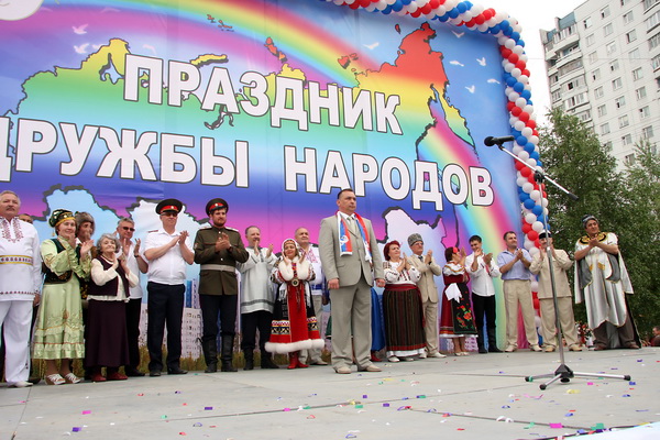 Нижневартовск, без преувеличения, строили всем миром. Со всех союзных республик съезжались молодые парни и девчата, строили дороги, добывали нефть, строили город и свою судьбу. Приезжали ненадолго, а остались навсегда. И город был и есть очень многонациональный. Но никогда здесь не было конфликтов на национальной почве. Сейчас в городе на постоянной основе работают 20 диаспор! Есть даже Центр национальных культур, где каждому нашлось местечко. И каждый год 12 июня на улице Дружбы Народов (Есть и такая в Нижневартовске!) проходит грандиозное действо. С 6 часов утра выезжают диаспоры и разворачивают хутора, юрты, хаты, яранги, столы с национальными блюдами. Члены диаспор одеваются в национальные одежды и пляшут, и поют, и угощают, зазывая в круг. Дагестанцы не обходятся без настоящих канатоходцев, казаки без лошадей, славяне без пирогов и самовара, украинцы без горилки, узбеки без плова, грузины без шашлыка, чеченцы без лезгинки… К 11 часам собираются толпы народа, все улыбаются, пускаются в пляс. А в 12 часов от церкви начинается шествие всех диаспор во главе с руководителями города. И такое охватывает чувство солидарности и единения всех со всеми, такая гордость за этот необыкновенный город, за Россию…