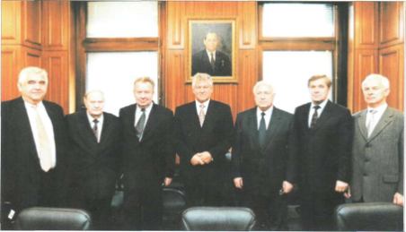 Слева направо: В.В.Никитин, А.К.Протазанов, Л.Ю.Рокецкий, В.Г.Чирсков, В.С.Черномырдин, И.И.Мазур, В.М.Павлюченко. Москва, 1999г. |