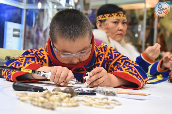Очень интересным был конкурс «Лучшее произведение национального народного искусства». Многие участники выставки привезли авторские работы. Жанры декоративно-прикладного творчества были разнообразны: это и резьба по кости, клыку моржа, оленьему и лосиному рогу, и художественная обработка камня, дерева и металла, и искусная вышивка и бисероплетение, и национальная меховая кукла, и художественные картины (рыбьей кожи), и оригинальные сувениры.