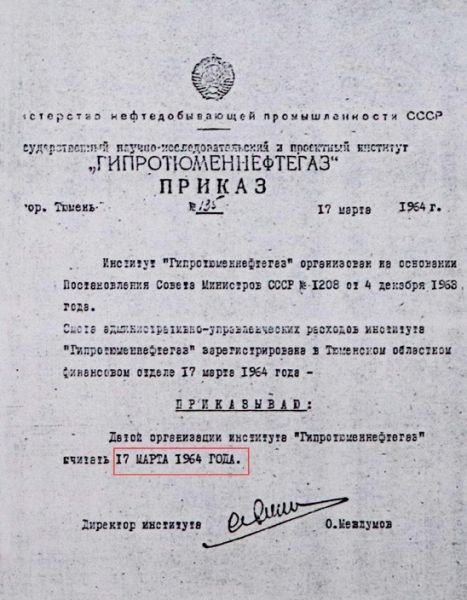 Затем  Постановлением Совета Министров СССР от 4 декабря 1963г. «Об организации подготовительных работ по промышленному освоению открытых нефтяных месторождений и дальнейшему развитию геологоразведочных работ в Тюменской области» для руководства работой в регионе и было сформировано в 1964-м производственное объединение «Тюменнефтегаз».