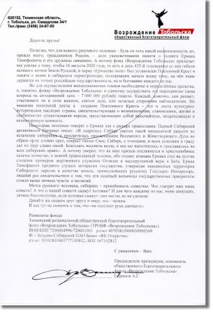 В нашу редакцию пришло письмо от председателя президиума, основателя общественного благотворительного фонда «Возрождение Тобольска» Аркадия Елфимова.