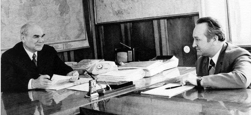 | Рабочая встреча с председателем Госплана СССР Н.К. Байбаковым. |