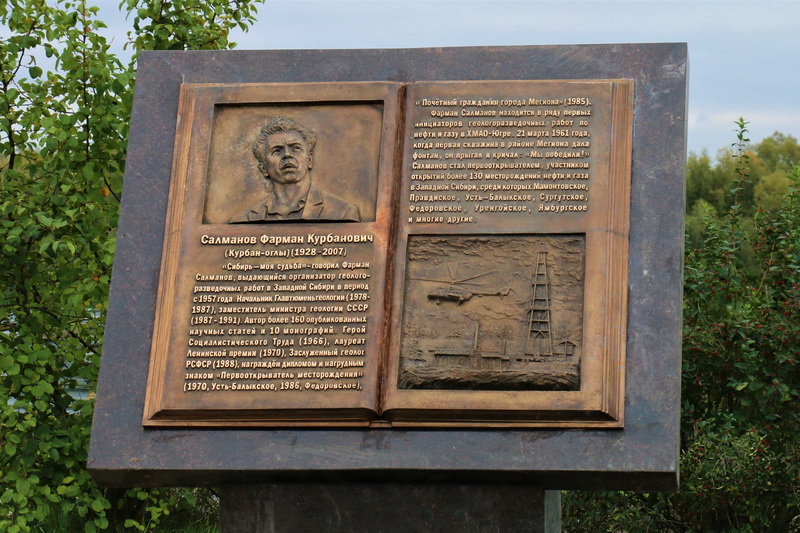 Сегодня имена первопроходцев Мегиона увековечены на бронзовых страницах скульптурной композиции города в виде раскрытых книг и установлены на территории Аллеи трудовой славы в городе. Барельефные портреты Фармана Салманова, Георгия Норкина и Владимира Абазарова, их биографии с иллюстрациями рассказывают историю мегионской нефти.