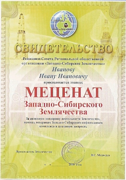 Благодарим наших попечителей. Дипломы и памятные свидетельства им будут вручены на ближайшем Совете РОО «Западно – Сибирское землячество» в Москве.