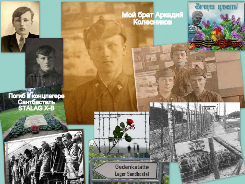С розыском брата Аркадия дело обстояло сложнее. Установлено, что его дивизия была окружена на второй день войны, большинство были убиты или попали в плен. Брат попал в немецкий концлагерь Зандбастель (Stalag X-B) под Гамбургом и погиб при организации побега в 1943 году.