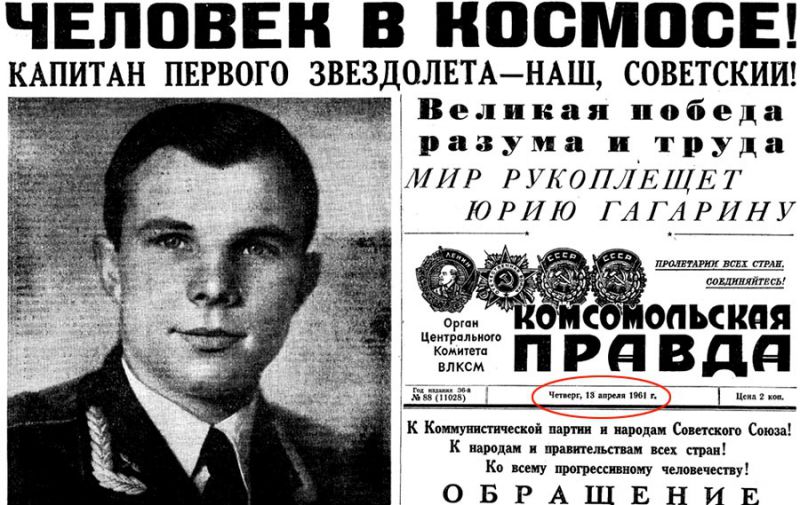 В этот день, 55 лет назад, старший лейтенант Юрий Гагарин на космическом корабле «Восток» Союза Советских Социалистических Республик впервые в мире совершил орбитальный облет Земли, открыв эпоху пилотируемых космических полетов.