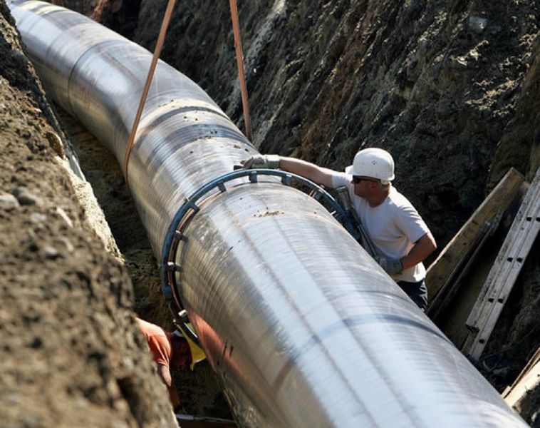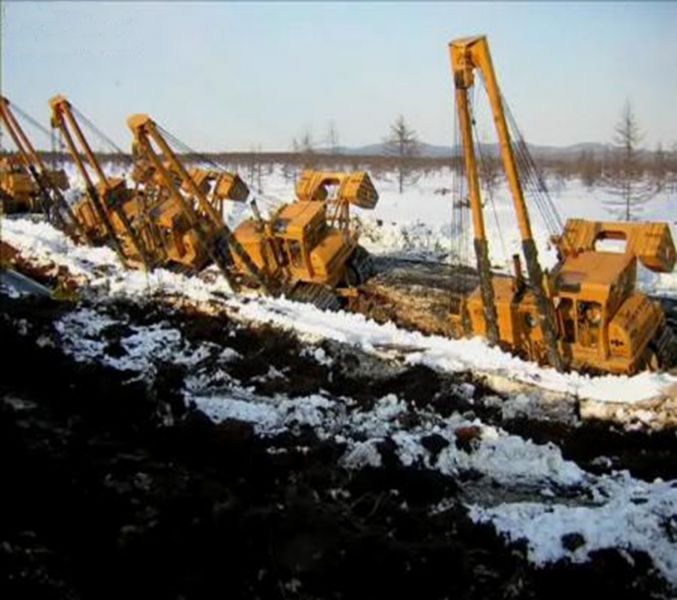 Укладка нефтепровода в болотистой местности