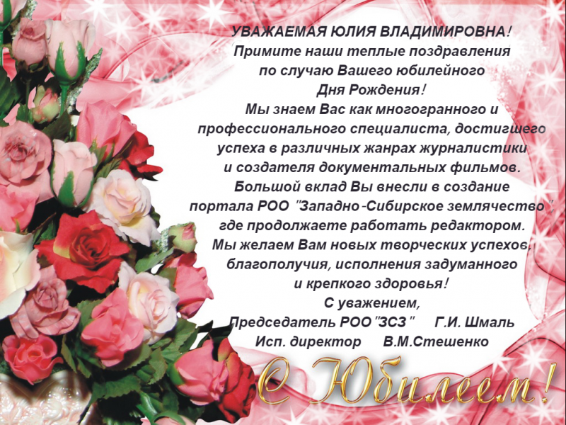 Юлии Коваленко: Новых творческих успехов и исполнения задуманного!