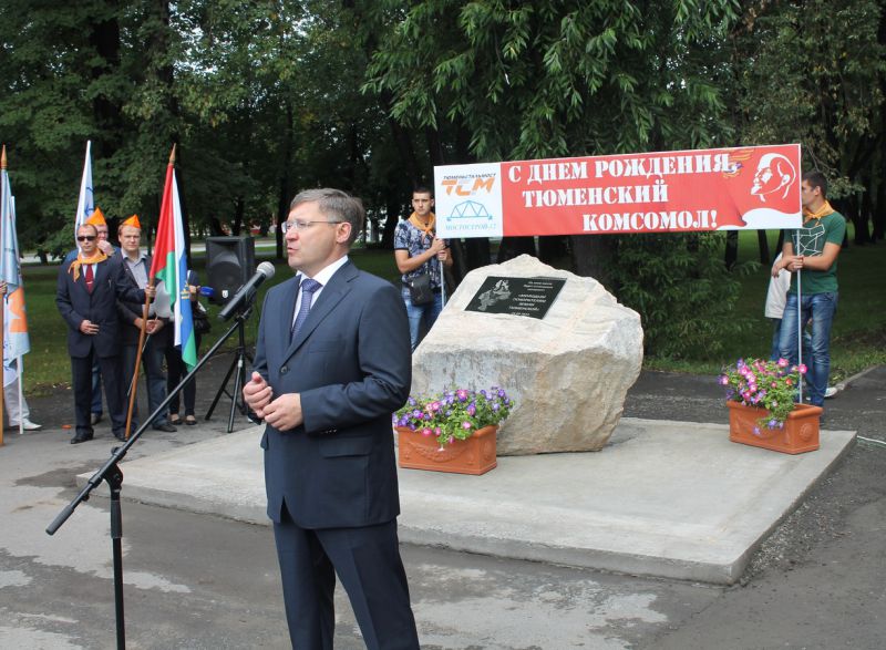 В Тюмени в липовом сквере им.Семена Пацко (недалеко от Дома культуры «Железнодорожник») состоялась торжественная церемония установки закладного камня на месте будущего монумента "Молодым покорителям земли Тюменской" в рамках сегодняшнего празднования 95-летия со дня образования тюменского комсомола.