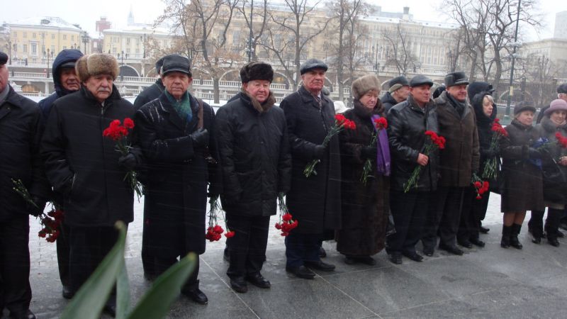 Церемонию возложения венков и цветов к могиле Неизвестного Солдата у Кремлевской стены открыл мэр Москвы С.С.Собянин, за ним последовали делегации г.Москвы и Подмосковья, общественные организации замыкали церемонию. Вместе со всеми делегациями наши земляки возложили цветы к могиле Неизвестного Солдата и памятнику маршалу Г.К.Жукову.