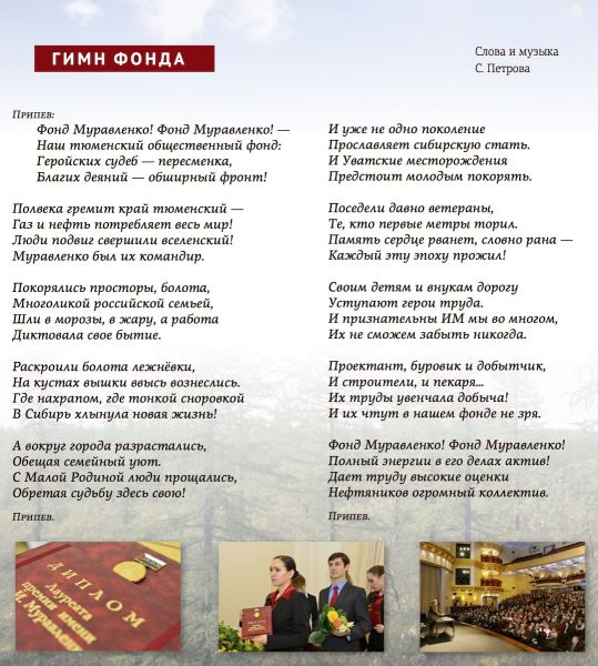 Серию публикаций, посвященных двум датам, продолжаем знакомством с гимном Фонда и стихами памяти легендарному начальнику Главтюменнефтегаза и его соратникам.