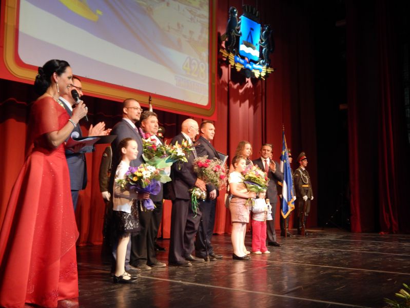 Приветствовали присутствующих также председатель Тюменской городской Думы Дмитрий Еремеев и глава администрации города Тюмени Александр Моор. В честь праздника за выдающийся вклад в жизнь Тюмени несколько горожан отмечены наградами - почетными грамотами и благодарностями губернатора Тюменской области, администрации Тюмени, Тюменской областной и городской Дум. Звание " Почетный гражданин города Тюмени " присвоено двум горожанам - детскому писателю Владиславу Крапивину и реставратору  Вадиму Шитову, много сделавшему для сохранения уникальных особняков купеческого города. Любопытно, что это звание было учреждено в 1876 году, и с тех пор 46 горожан его удостоились.