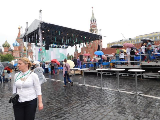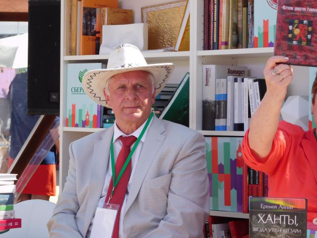 Итак, с утра 25 июня лил дождь. Земляков собралось немного. То ли дождя испугались, то ли оповещение было неполным. Нина Сосова, Галина Столбова, Василий Долгих, Лидия Уланова, Людмила Бялковская, Николай Сизов и я. Вот, кажется, и все. Пошли искать тюменский павильон. Он оказался под №13, у самой Спасской башни, ближе всех к главной сцене, где играл Денис Мацуев с симфоническим оркестром республики Татарстан. Красная площадь утопала в прелестных звуках, капли дождя барабанили по зонту, а глаза тянулись к книжным развалам. Вот они, родные наши «однополчане»: Еремей Айпин, Анатолий Омельчук, Леонид Иванов, Анна Неркаги, Александр Новопашин, Сергей Козлов..! Книги выстроились в ряд, выложены стопочками. А где же сами творцы? Кто-то сказал: «Пошли в ГУМ на пресс-конференцию». Надо же послушать! Кинулась туда. Где? Во сколько? На каком этаже? На какой линии? Но… не было там никакой конференции. Ребята просто разошлись пообедать. Фантазеры!