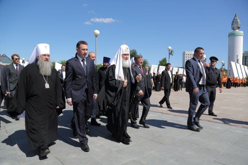 Патриарх подчеркнул, что без силы духа не бывает побед, к которым жители Тюменской области стремятся и сегодня, и призвал благословение Божье на тюменскую землю.