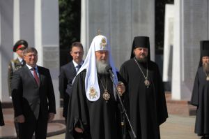 Оба эти периода, считает патриарх, потребовали от людей огромной концентрации сил, духа, и способны были на такие подвиги только духовно сильные люди. «Не случайно, - считает он, - сибирские дивизии были на острие атак во время Великой Отечественной войны. Я приехал на землю, где живут сильные, целеустремленные люди».